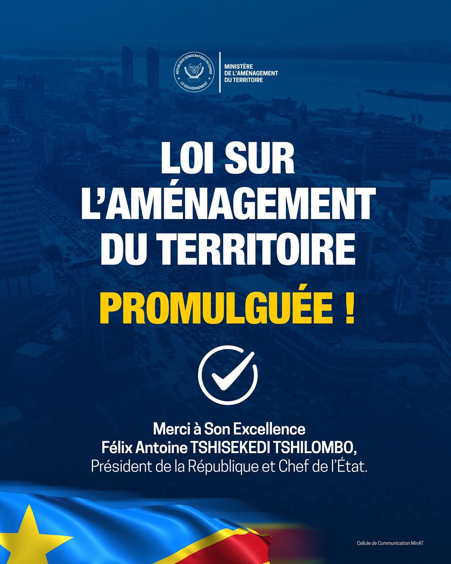 La Loi sur l’Aménagement du Territoire est désormais promulguée par Son Excellence Monsieur le Président de la République et Chef de l’État, Félix Antoine TSHISEKEDI TSHILOMBO.